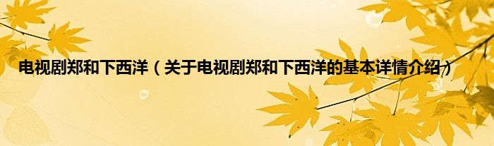 本文关于电视剧郑和下西洋的基本详情介绍就讲解完毕,希望对大家有所帮助。