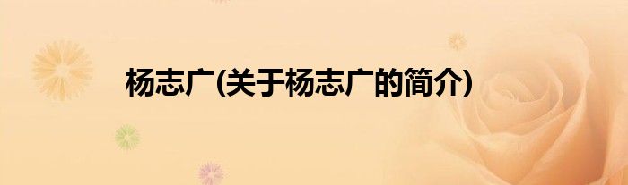 大家好,杨志广,关于杨志广的简介很多人还不知道,现在让我们一起来看看吧!