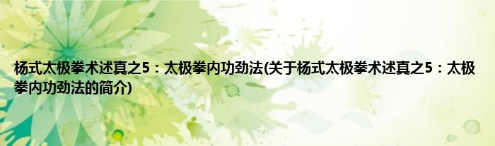 本文关于杨式太极拳术述真之5:太极拳内功劲法的简介就讲解完毕,希望对大家有所帮助。