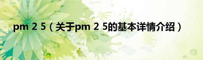 本文关于pm 2 5的基本详情介绍就讲解完毕,希望对大家有所帮助。