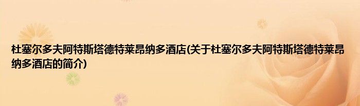 大家好,杜塞尔多夫阿特斯塔德特莱昂纳多酒店,关于杜塞尔多夫阿特斯塔德特莱昂纳多酒店的简介很多人还不知道,现在让我们一起来看看吧!