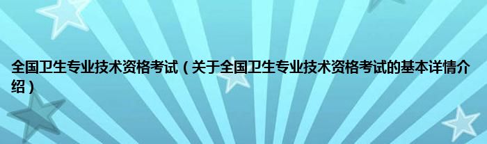 本文关于全国卫生专业技术资格考试的基本详情介绍就讲解完毕,希望对大家有所帮助。