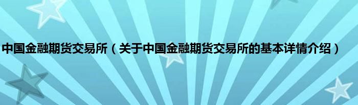 本文关于中国金融期货交易所的基本详情介绍就讲解完毕,希望对大家有所帮助。