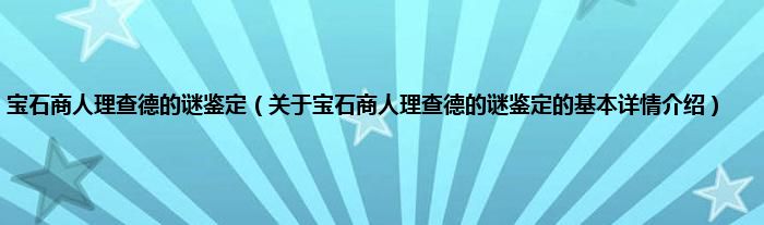 宝石商人理查德的谜鉴定(关于宝石商人理查德的谜鉴定的基本详情介绍)