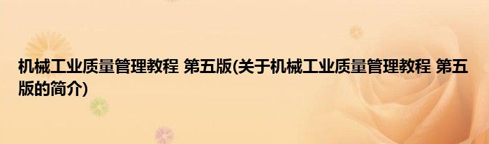 机械工业质量管理教程第五版(关于机械工业质量管理教程第五版的简介)