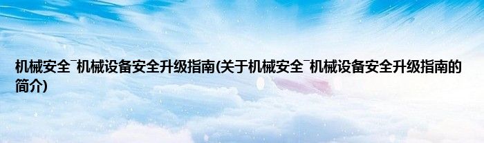 本文关于机械安全―机械设备安全升级指南的简介就讲解完毕,希望对大家有所帮助。