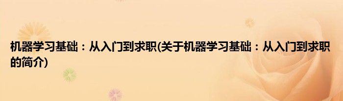 本文关于机器学习基础:从入门到求职的简介就讲解完毕,希望对大家有所帮助。