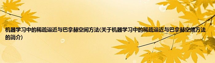 本文关于机器学习中的稀疏逼近与巴拿赫空间方法的简介就讲解完毕,希望对大家有所帮助。