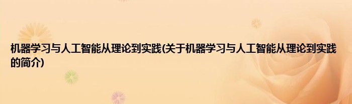 大家好,机器学习与人工智能从理论到实践,关于机器学习与人工智能从理论到实践的简介很多人还不知道,现在让我们一起来看看吧!