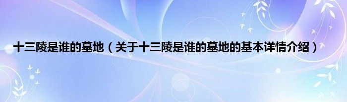 本文关于十三陵是谁的墓地的基本详情介绍就讲解完毕,希望对大家有所帮助。
