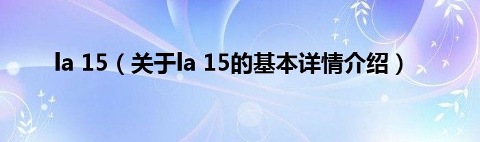 本文关于la 15的基本详情介绍就讲解完毕,希望对大家有所帮助。