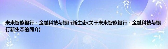 本文关于未来智能银行:金融科技与银行新生态的简介就讲解完毕,希望对大家有所帮助。