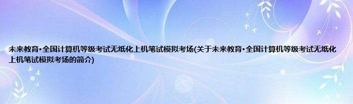 大家好,未来教育·全国计算机等级考试无纸化上机笔试模拟考场,关于未来教育·全国计算机等级考试无纸化上机笔试模拟考场的简介很多人还不知道,现在让我们一起来看看吧!