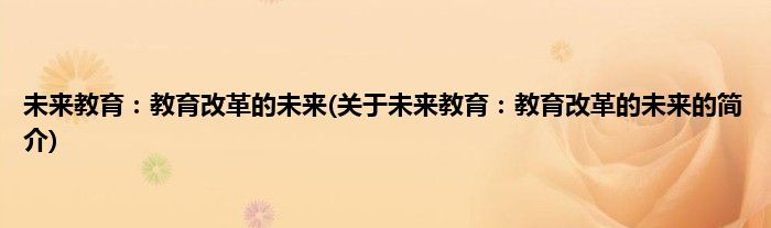 本文关于未来教育:教育改革的未来的简介就讲解完毕,希望对大家有所帮助。