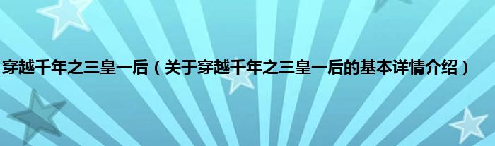 本文关于穿越千年之三皇一后的基本详情介绍就讲解完毕,希望对大家有所帮助。