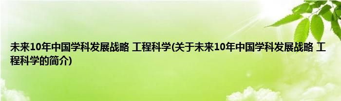 本文关于未来10年中国学科发展战略。工程科学的简介就讲解完毕,希望对大家有所帮助。