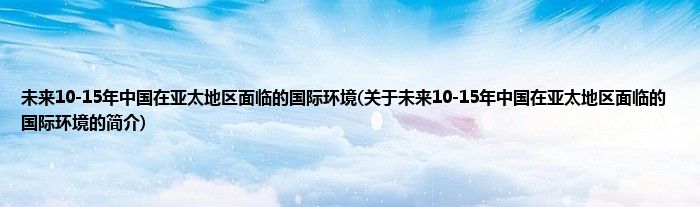 大家好,未来10-15年中国在亚太地区面临的国际环境,关于未来10-15年中国在亚太地区面临的国际环境的简介很多人还不知道,现在让我们一起来看看吧!