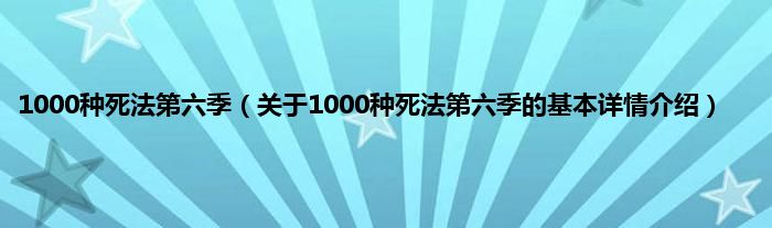 本文关于1000种死法第六季的基本详情介绍就讲解完毕,希望对大家有所帮助。