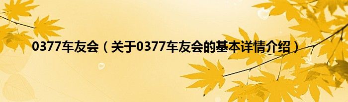 本文关于0377车友会的基本详情介绍就讲解完毕,希望对大家有所帮助。