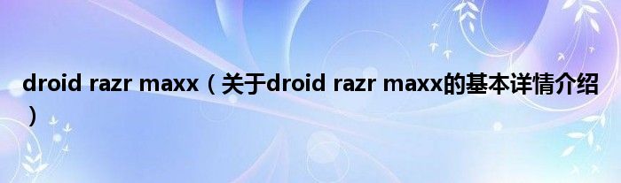本文关于droid razr maxx的基本详情介绍就讲解完毕,希望对大家有所帮助。