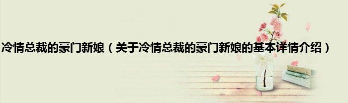 本文关于冷情总裁的豪门新娘的基本详情介绍就讲解完毕,希望对大家有所帮助。