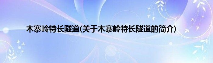 本文关于木寨岭特长隧道的简介就讲解完毕,希望对大家有所帮助。