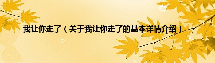 本文关于我让你走了的基本详情介绍就讲解完毕,希望对大家有所帮助。