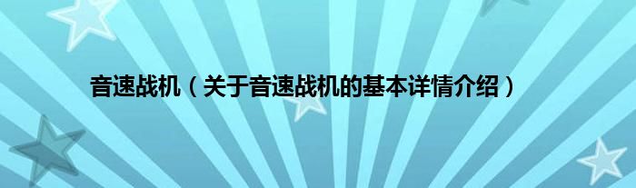本文关于音速战机的基本详情介绍就讲解完毕,希望对大家有所帮助。