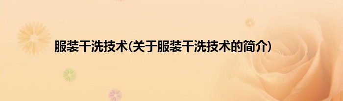大家好,服装干洗技术,关于服装干洗技术的简介很多人还不知道,现在让我们一起来看看吧!