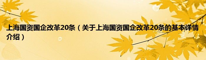 本文关于上海国资国企改革20条的基本详情介绍就讲解完毕,希望对大家有所帮助。