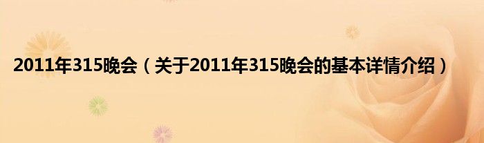 本文关于2011年315晚会的基本详情介绍就讲解完毕,希望对大家有所帮助。