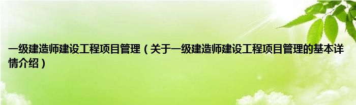 本文关于一级建造师建设工程项目管理的基本详情介绍就讲解完毕,希望对大家有所帮助。