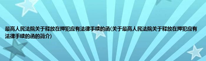 本文关于最高人民法院关于释放在押犯应有法律手续的函的简介就讲解完毕,希望对大家有所帮助。