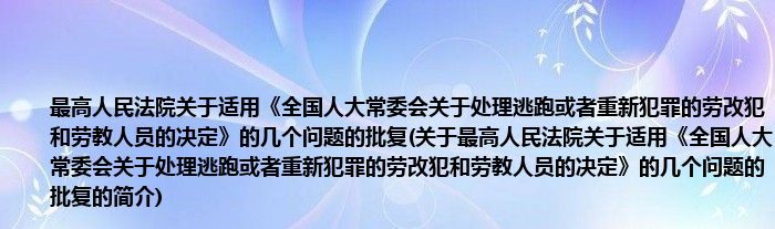 大家好,最高人民法院关于适用《全国人大常委会关于处理逃跑或者重新犯罪的劳改犯和劳教人员的决定》的几个问题的批复,关于最高人民法院关于适用《全国人大常委会关于处理逃跑或者重新犯罪的劳改犯和劳教人员的决定》的几个问题的批复的简介很多人还不知道,现在让我们一起来看看吧!