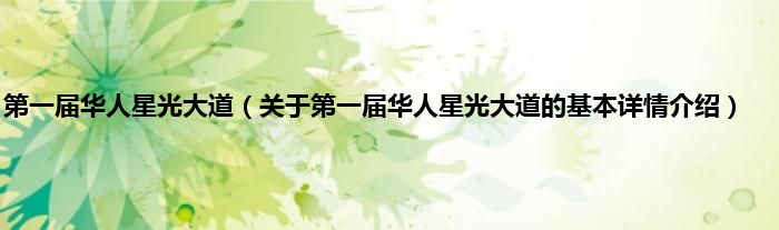 本文关于第一届华人星光大道的基本详情介绍就讲解完毕,希望对大家有所帮助。