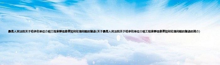 本文关于最高人民法院关于给承包单位介绍工程索要信息费如何处理问题的复函的简介就讲解完毕,希望对大家有所帮助。