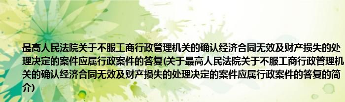 本文关于最高人民法院关于不服工商行政管理机关的确认经济合同无效及财产损失的处理决定的案件应属行政案件的答复的简介就讲解完毕,希望对大家有所帮助。