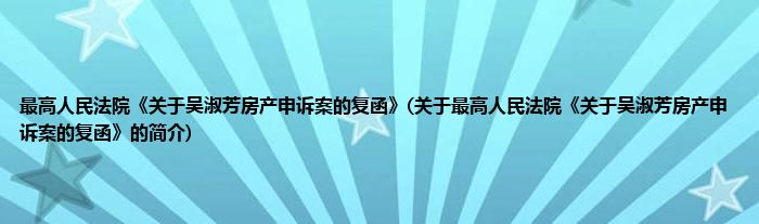 本文关于最高人民法院《关于吴淑芳房产申诉案的复函》的简介就讲解完毕,希望对大家有所帮助。