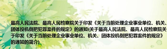 本文关于最高人民法院、最高人民检察院关于印发《关于当前处理企业事业单位、机关、团体投机倒把犯罪案件的规定》的通知的简介就讲解完毕,希望对大家有所帮助。