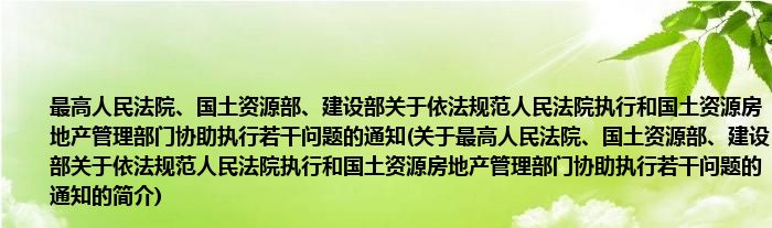 本文关于最高人民法院、国土资源部、建设部关于依法规范人民法院执行和国土资源房地产管理部门协助执行若干问题的通知的简介就讲解完毕,希望对大家有所帮助。
