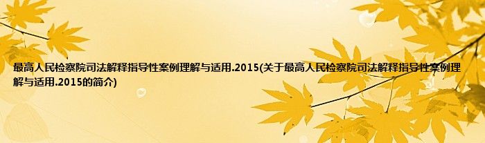 大家好,最高人民检察院司法解释指导性案例理解与适用.2015,关于最高人民检察院司法解释指导性案例理解与适用.2015的简介很多人还不知道,现在让我们一起来看看吧!