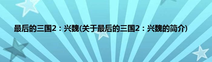 本文关于最后的三国2:兴魏的简介就讲解完毕,希望对大家有所帮助。