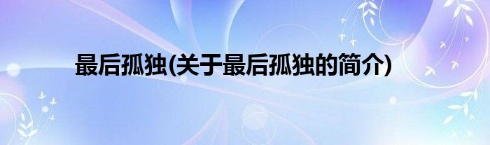 大家好,最后孤独,关于最后孤独的简介很多人还不知道,现在让我们一起来看看吧!