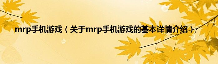 本文关于mrp手机游戏的基本详情介绍就讲解完毕,希望对大家有所帮助。