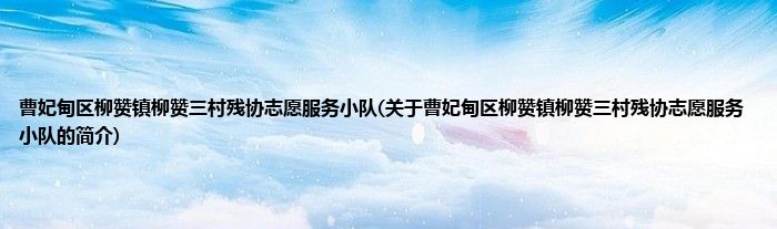 本文关于曹妃甸区柳赞镇柳赞三村残协志愿服务小队的简介就讲解完毕,希望对大家有所帮助。