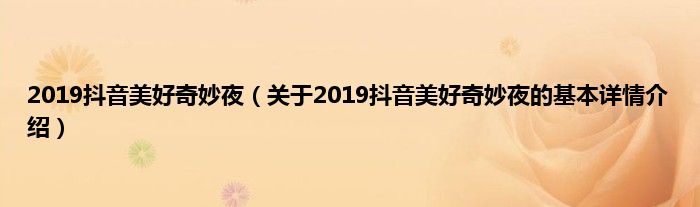 2019抖音美好奇妙夜(关于2019抖音美好奇妙夜的基本详情介绍)