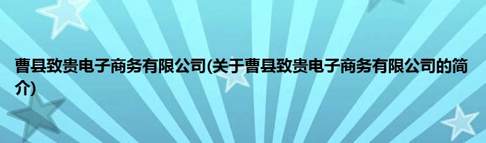 本文关于曹县致贵电子商务有限公司的简介就讲解完毕,希望对大家有所帮助。