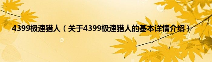 本文关于4399极速猎人的基本详情介绍就讲解完毕,希望对大家有所帮助。