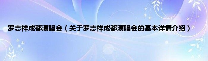 本文关于罗志祥成都演唱会的基本详情介绍就讲解完毕,希望对大家有所帮助。