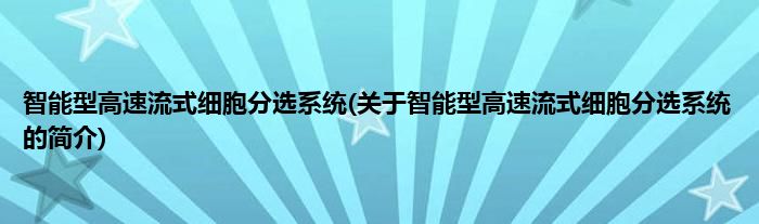 本文关于智能型高速流式细胞分选系统的简介就讲解完毕,希望对大家有所帮助。